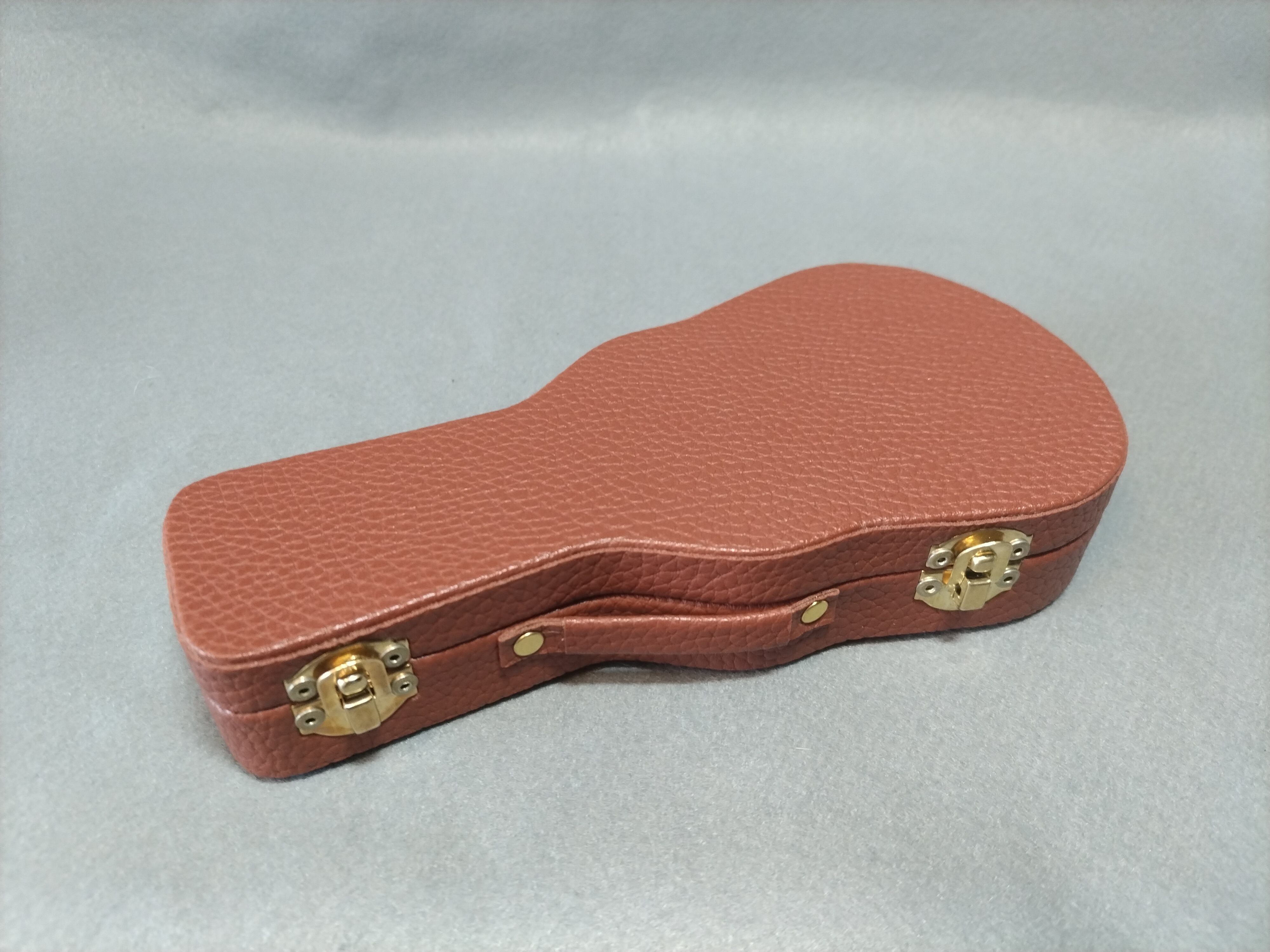 ギターケース型 小物入れ (外装色シボブラウン+金具金色 or 金具銀色)