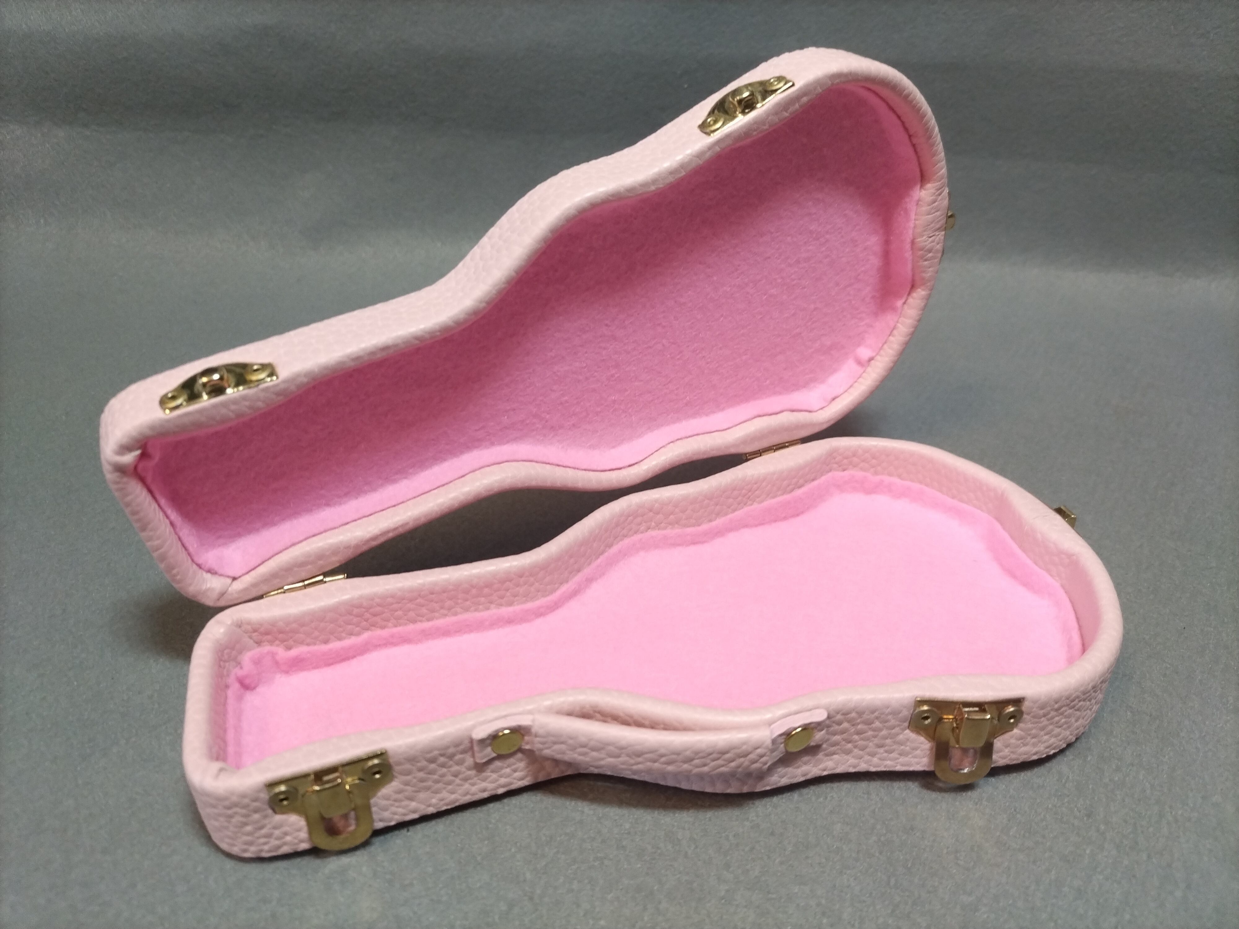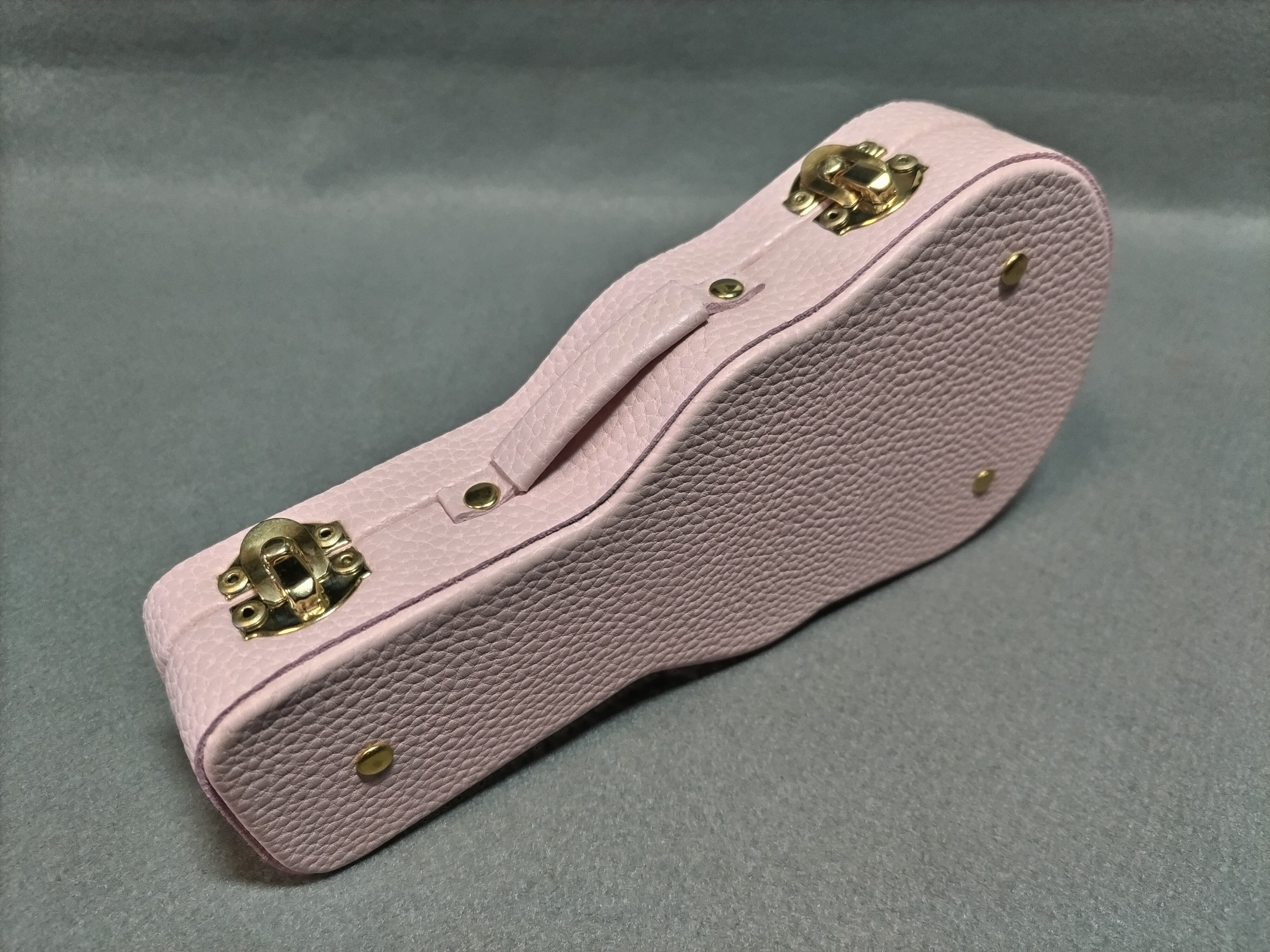 ギターケース型 小物入れ (外装色シボライトピンク+金具金色 or 金具銀色)